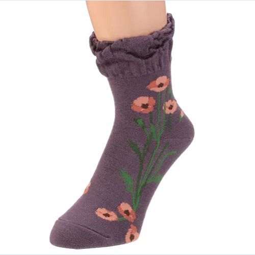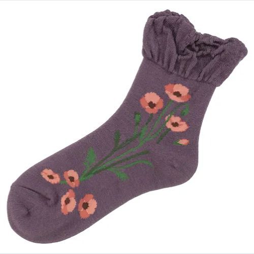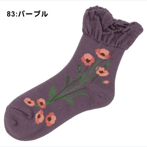 エトワール海渡 かかとケア 秋冬用美容ソックス お花柄《4色、22〜24cm》 2足入 [167-637]