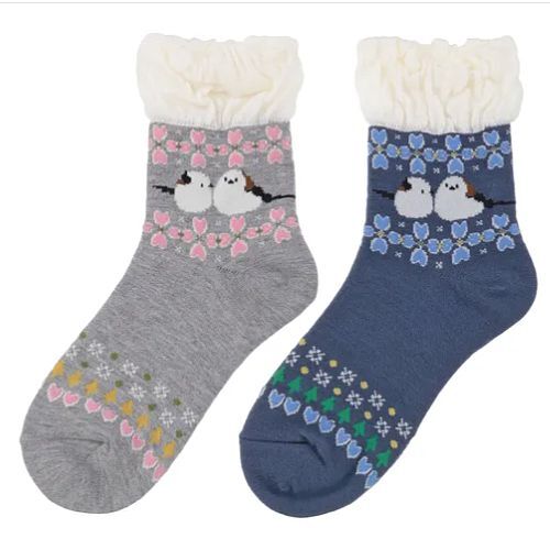 エトワール海渡 かかとケア 秋冬用美容ソックス ノルディック×シマエナガ《2色、22〜24cm》 2足入 [167-641]