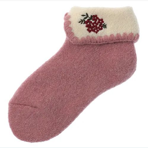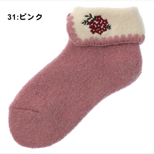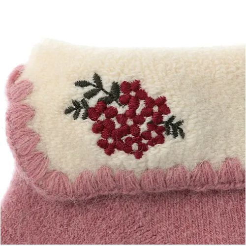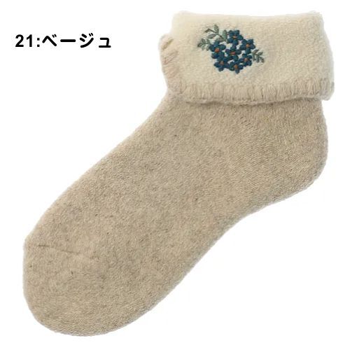 エトワール海渡 アンゴラ混 お花刺繍 折り返し ルームソックス 【在庫限り】《3色、22cm〜24cm》 [168-138]