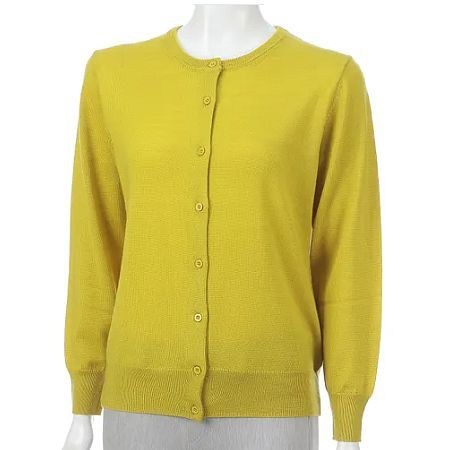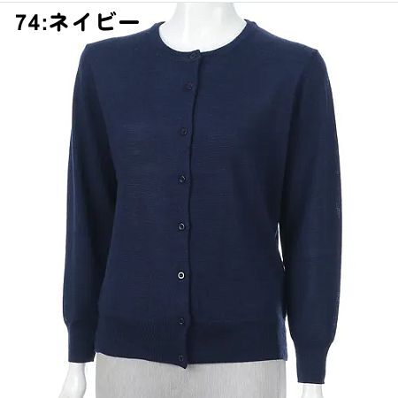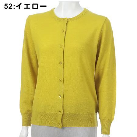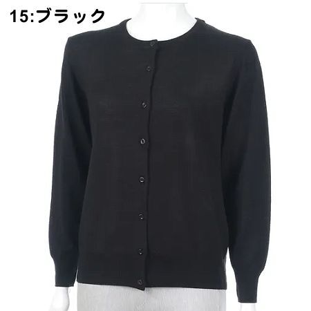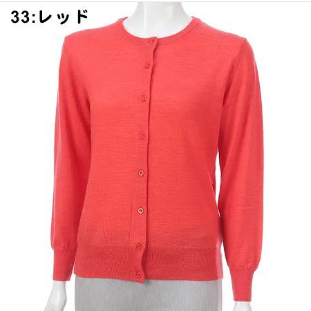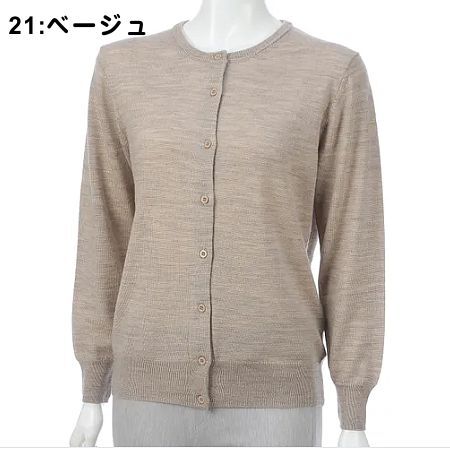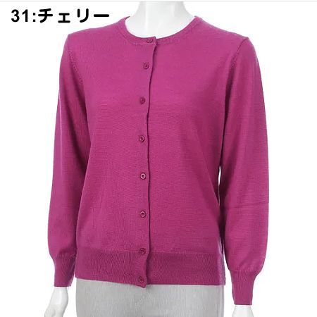 ウール100% ベーシッククルーネックカーディガン《フリーサイズ、8色、着丈60cm》