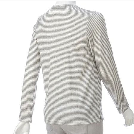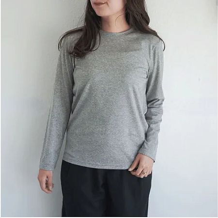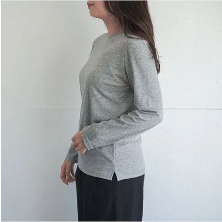 ベーシックなクルーネックなので冬はセーターのインナーとして、暖かい時期は1枚で着れる使い勝手の良いアイテムです。