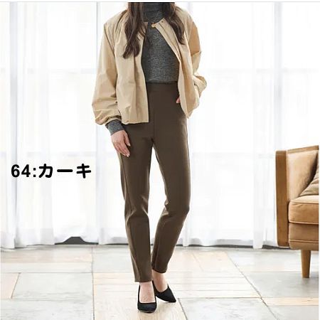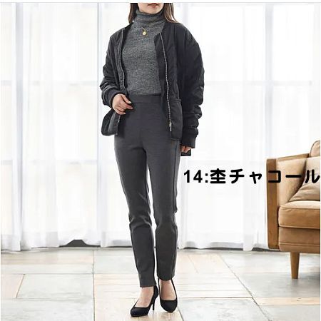 Reginetta クロスウォーム 吸湿発熱素材 切替スリムパンツ 【12月上旬入荷予定】《M・L・LL、4色、股下丈68cm》 [250-786]