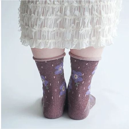 エトワール海渡 毛混 手篝(かがり)ソックス フロート花柄《3色、23〜25cm》 3足入【5%特別ポイント品】 [141-202]