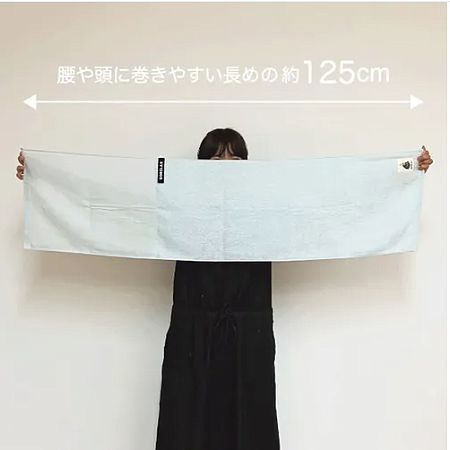 腰や頭に巻きやすい長めの約125cm、女性がサウナ上がりに頭に巻くのにも便利。