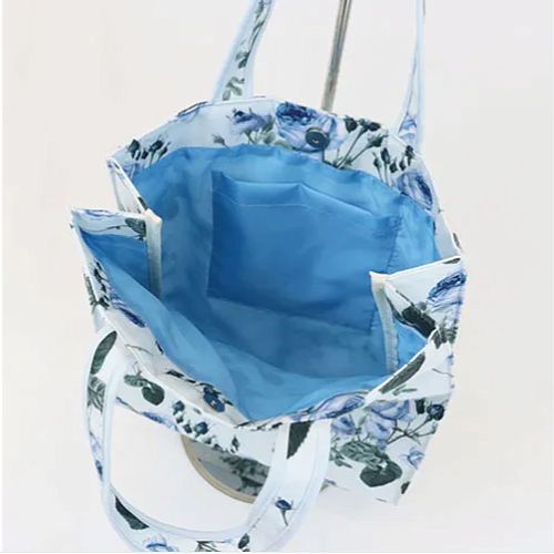 ピエールジョセフルドゥーテの人気のバラを配し、世界的に有名な陶磁器からインスパイアを受けたブルーの濃淡が上品で爽やかな印象の、LA LUICEオリジナルプリントを使用したA4トートバッグです。