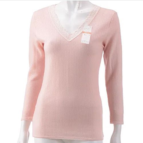 エアメリー 裏綿100%・表ウール100% 二重編 8分袖インナー《M・L・LL、パステルピーチのみ》
