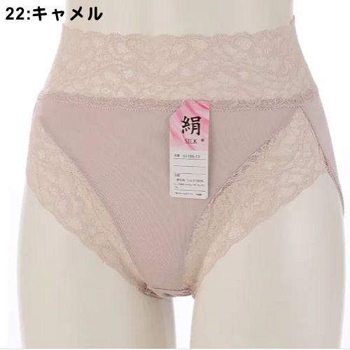 絹 シルク ウエストレース 丈長ショーツ《M・L・LL、3色》