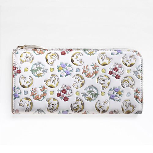 【お取り寄せ品】浅草文庫 ネコ柄 L字ファスナー 長財布《イエローのみ、約9.5×19×1.7cm、牛革》